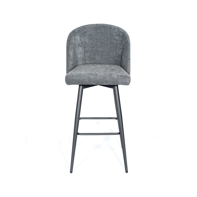Itaas ang iyong restawran, bar, o kusina Dekorasyon sa aming Classic Black Steel Bar Stool Nagtatampok ng isang komportableng kulay -abo na upuan ng tela at matikas na hubog na backrest. Ang maraming nalalaman apat na paa na dumi Pinagsasama ang tibay sa istilo ng kontemporaryong, ginagawa itong perpekto para sa parehong komersyal at tirahan na paggamit.