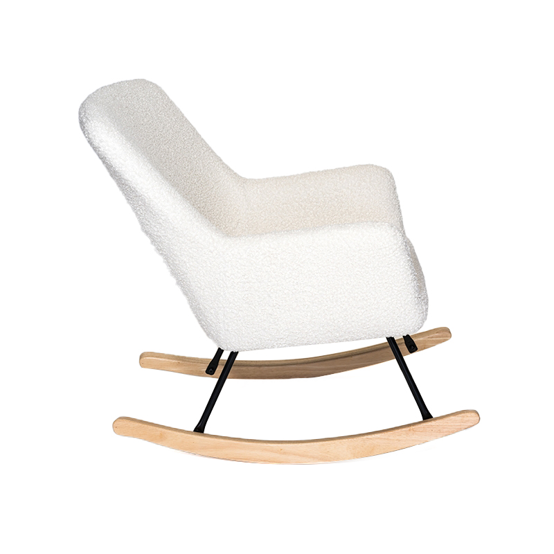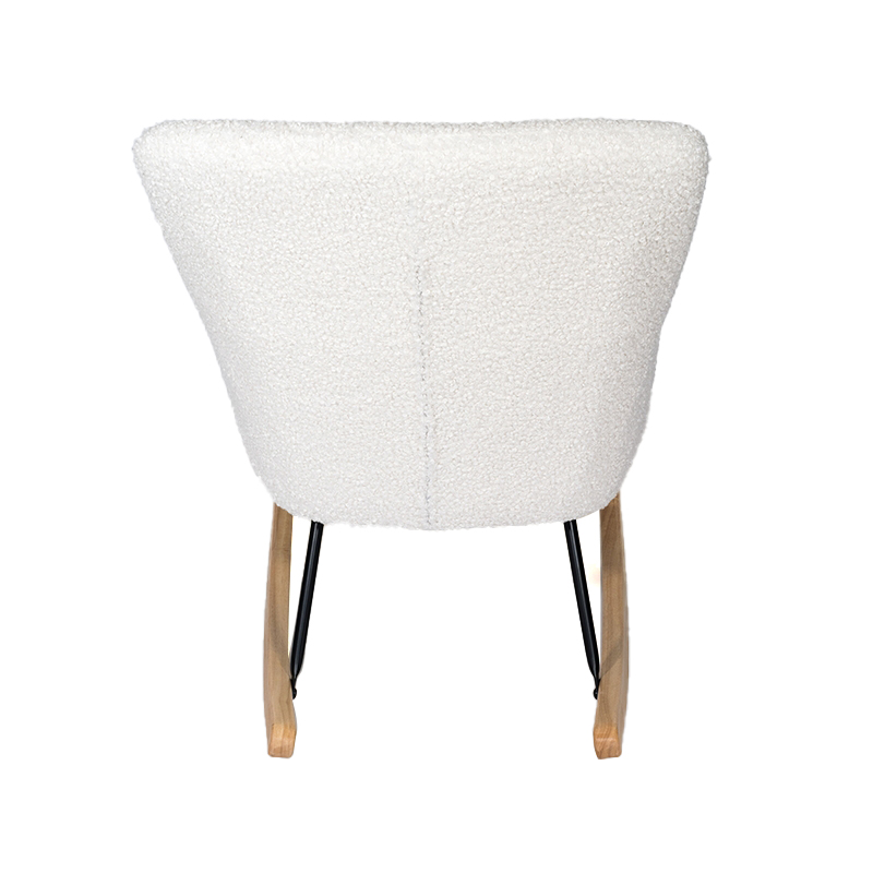 Ang puting plush na tela na tumba -tumba ay naging isang highlight ng maraming mga dekorasyon sa bahay na may simple ngunit matikas na istilo ng disenyo. Gumagamit ito ng de-kalidad na plush na tela bilang tela, na malambot at komportable sa pagpindot, na nagpapahintulot sa mga tao na madama ang init at pambalot na pakiramdam tulad ng mga ulap habang tinatamasa ang saya ng tumba. Ang puting scheme ng kulay ay nagbibigay sa rocking chair na ito ng isang sariwa at pino na pag -uugali. Inilagay man ito sa sala, silid -tulugan o balkonahe, maaari itong timpla nang maayos sa nakapaligid na kapaligiran at magdagdag ng isang maliwanag na kulay sa kapaligiran ng bahay.